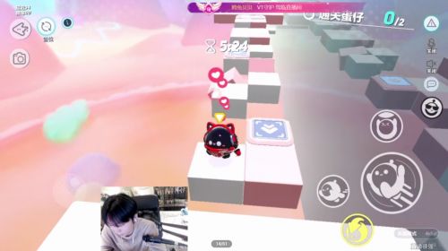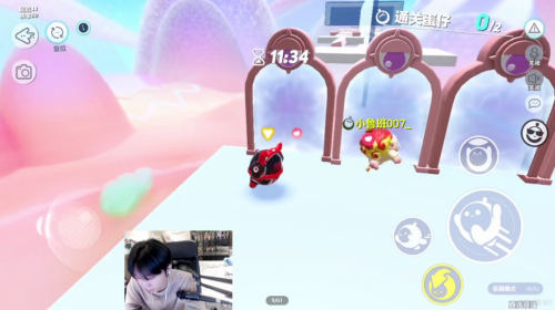 随后熟悉操作的孤影便和小鲁班一起来到了“甜蜜与你”双人地图中开启了默契度测试,作为蛋仔派对中非常热门的双人地图,这张图非常考验两位玩家的默契与配合。下午有偷偷补课的孤影也是在进入地图之后一马当先,凭借着娴熟的操作首先来到了升降台,之后两人通力合作也是轻松通过。