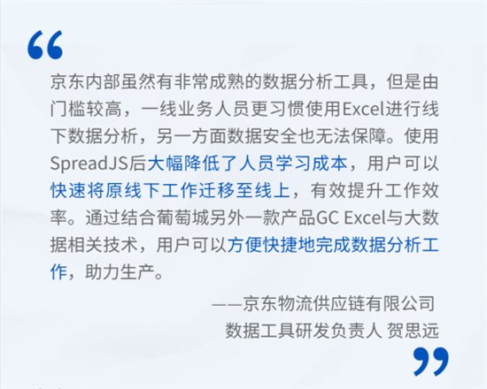 来自京东物流的数据工具研发负责人 贺思远,分享了像京东物流这样已高度实现数字化分析的企业中,如何通过应用葡萄城的表格产品再次提升系统的生产力: