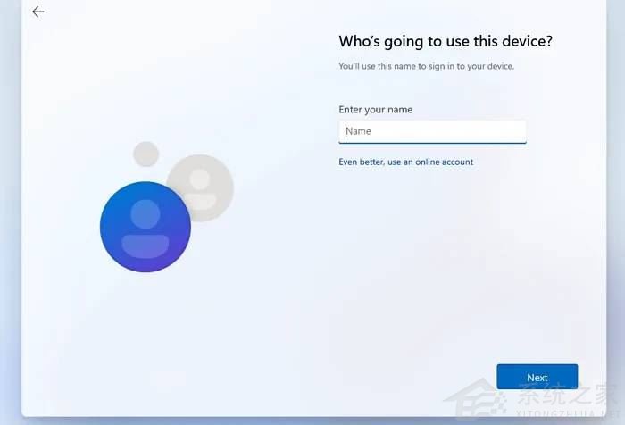 由于您正在创建本地帐户,Windows 会询问您的姓名。把你的名字写在栏里。