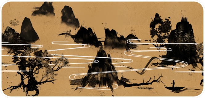 选取黄帝、迎客松 、黄山茶 、守松人 、佛光、怪石 、云雾 、石刻等视觉形象,主体文人抚琴,营造高山流水的声画意境。