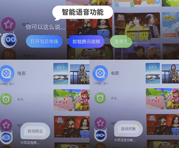 在智能功能方面,当贝U1除了基本的自动对焦、自动梯形校正之外,还内置了一个”一键画面平整“功能。通过当贝家app或者小程序拍一拍即可一键快速平整画面。简单方便易上手,对于家里的老人小孩都很适用。