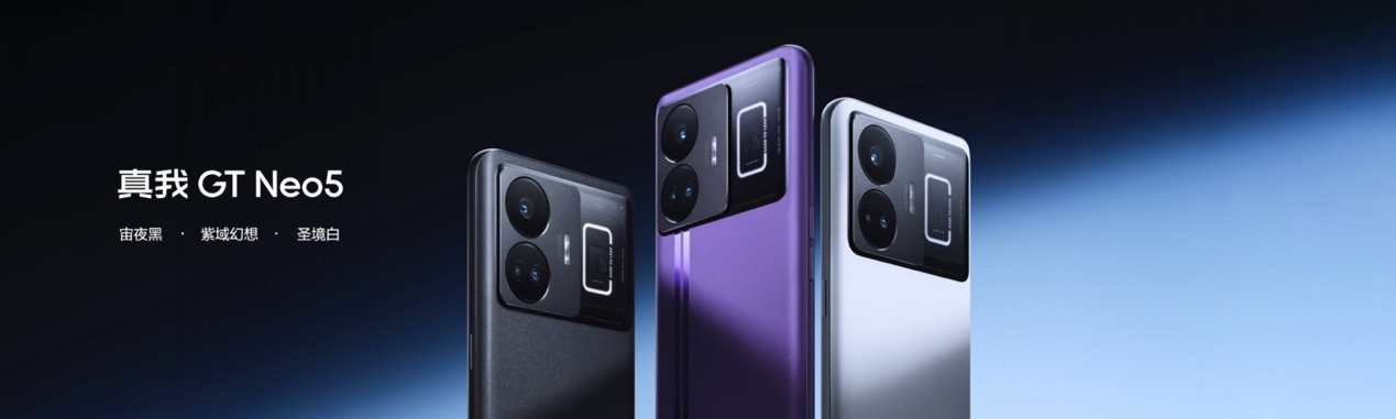 此次,真我GT Neo5在配色上,打造出紫域幻想、圣境白、宙夜黑三款配色,运用创新AG漫反射工艺,更凸显旗舰质感。