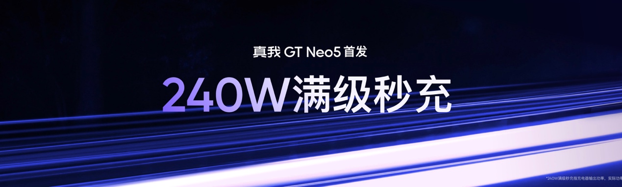 真我GT Neo5带来全球首发量产的240W满级秒充,率先行业达到目前Type-C接口的最高充电功率,实现闪充技术的越级登顶。