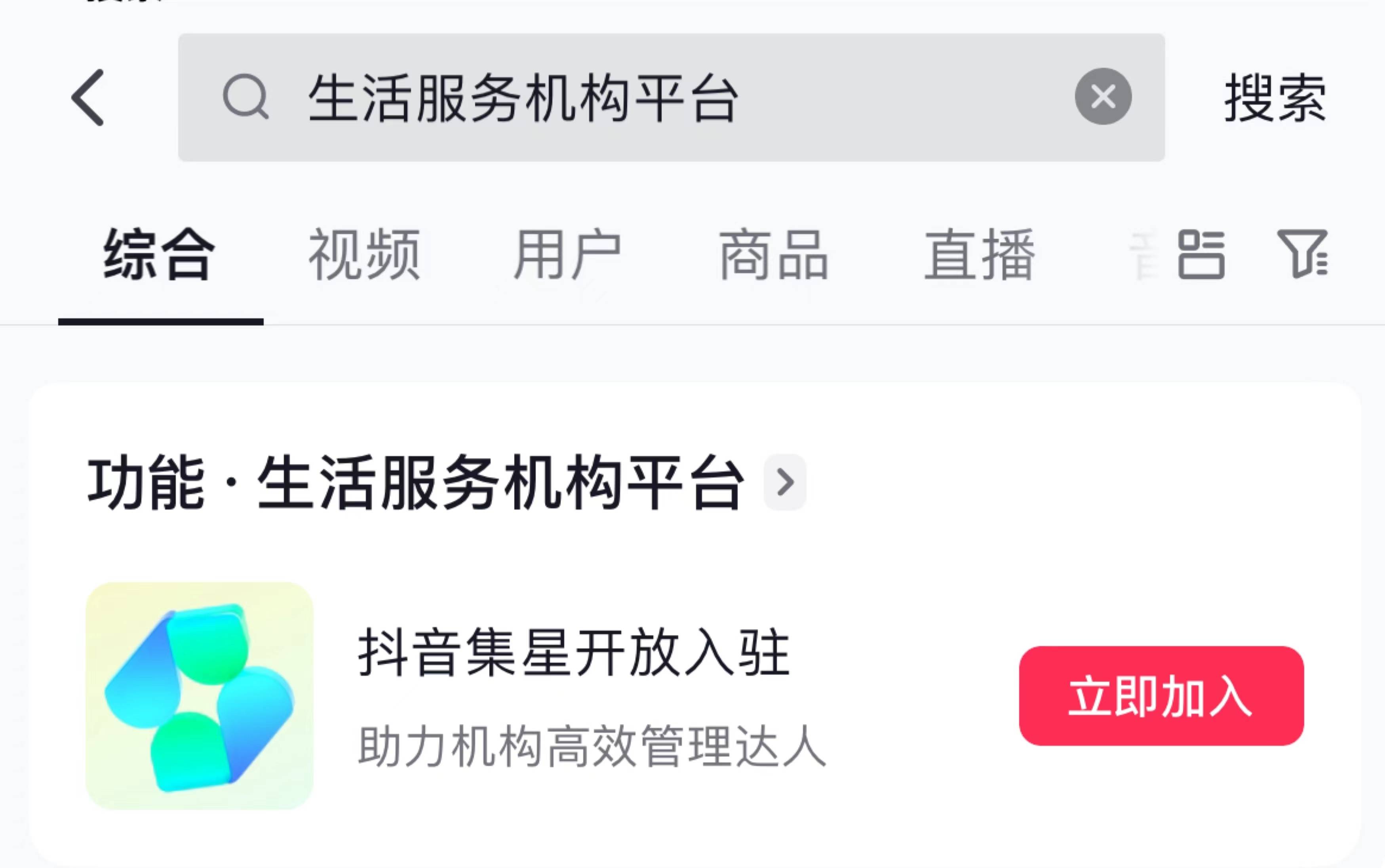抖音App搜索“生活服务机构平台”,完成入驻