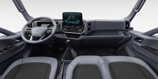 除了外观,内饰也进行了一番“大改造”。驾驶室采用深灰作为主色调,低调简约,颇具现代风格。颜值高的同时,实用性更高,整体驾驶室的空间利用率大幅提升。驾驶室采用仪表台扁平化设计,腿部空间的到了极大提升,副驾都能翘起二郎腿。车顶加高45mm,宽大的内部空间,极大了提升了驾驶舒适性。以驾驶员为中心的环抱式仪表台,提高操作的便捷性,美观又实用。全包裹气囊减震扶手座椅,提供良好的支撑,有效缓解长期驾驶带来的疲劳感。
