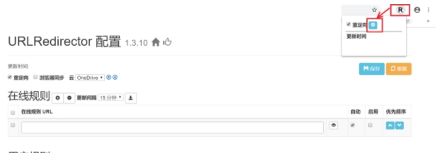 4、点击扩展图标的设置按钮进入设置页面,注意勾选左上角「重定向」才能使其生效;