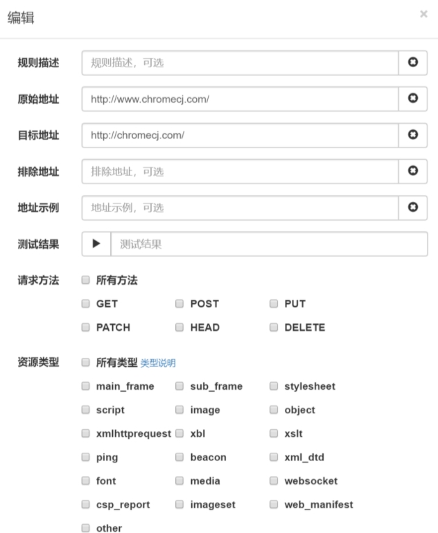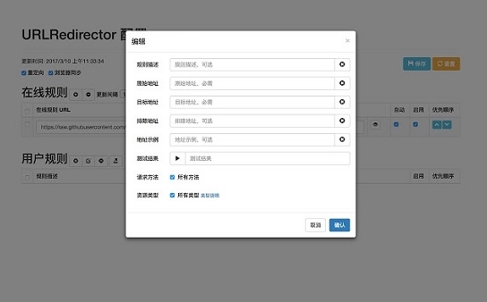 6、URLRedirector 还支持自定义规则,你可以随意设置原始地址转向目标地址。