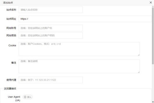 输入站点名称,站点网址,网站账号,网站密码,Cookie等信息后,点击按钮,保存数据。