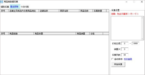 2、进入今日付款数据采集界面,该界面可以输入关键词进行数据采集。