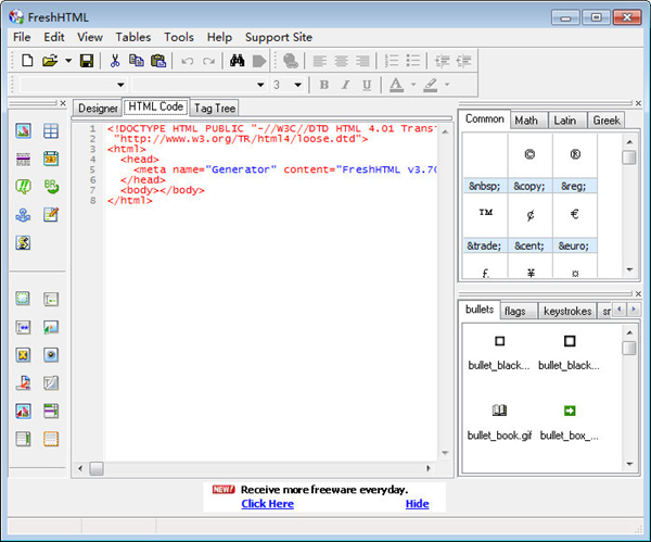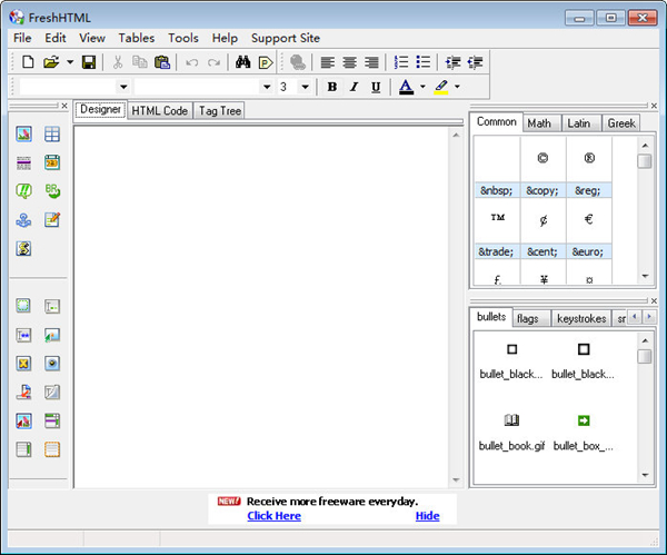 Fresh HTML是一款专业的html编辑器,软件能实现文本编辑一般的对HTML页面进行操作,上手快易操作,能够很好的进行HTML代码调整,得到想要的效果,支持自定义高度、宽度等数据,快来开发自己的网站吧。