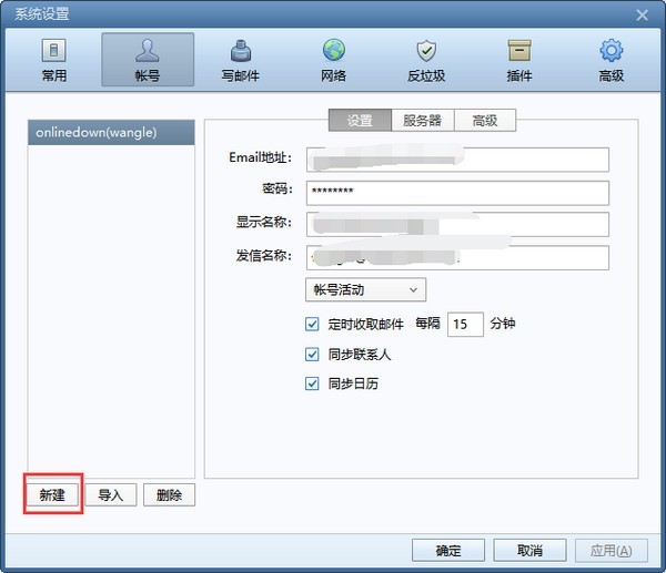 2、在打开的foxmail邮箱设置窗口中点击顶部的【账号】,点击左下角的【新建】。