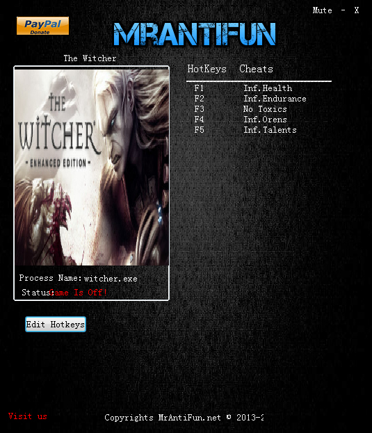 运行游戏,打开巫师五项修改器,按相应的热键即可
