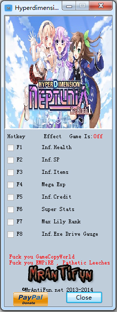 超次元游戏海王星重生1八项修改器是该款同名角色扮演游戏——《鬼超次元游戏海王星:重生1》的辅助工具。该款超次元游戏海王星重生1修改器可进行无限生命、无限SP、无限道具、海量经验等8项操作设置辅助,让你更轻松的进行游戏体验!