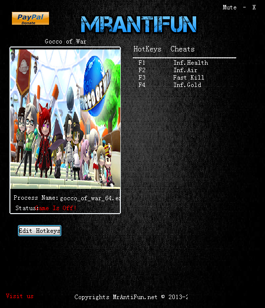 GOCCO之战四项修改器,可获得无限生命,无限金等四项实用功能,需要的可以来看下哦。