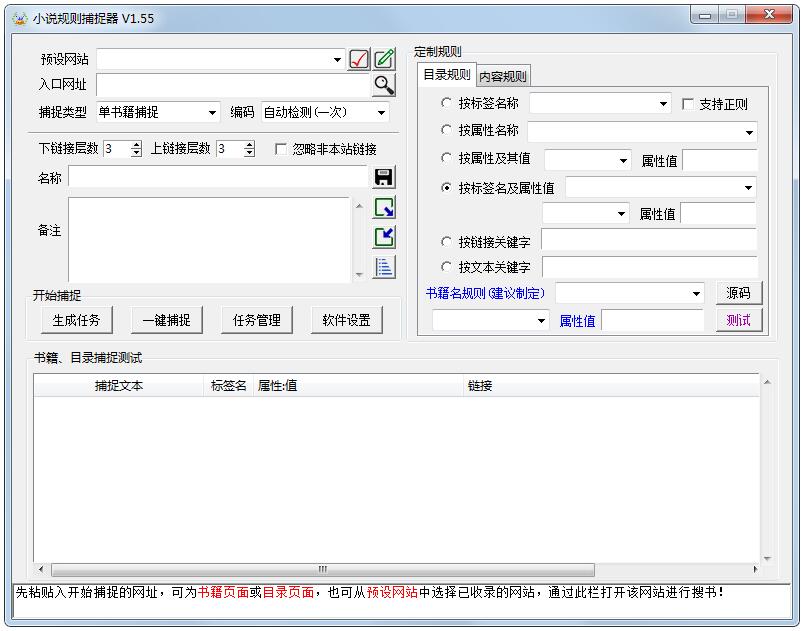 自定义规则捕捉,能对大部分小说网进行文章捕捉,个别网站对书籍分类详细的,还支持多书籍捕捉;