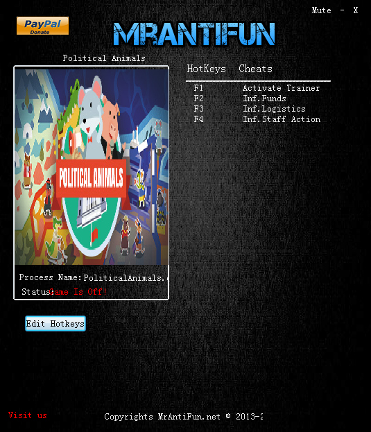 政治动物三项修改器,可获得无限资金,无限物流等三项实用功能,需要的可以来看下哦。
