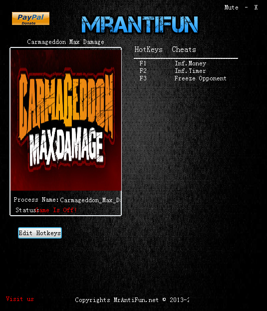 运行游戏,打开死亡赛车终极破坏修改器,按相应的热键即可