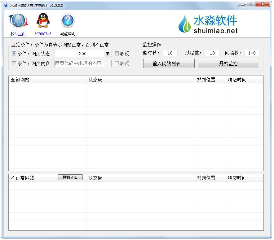 水淼软件出品的网站访问情况批量监控工具,如果你有几百几千甚至几万个网站,那就一定需要实时掌握每个网站是否能正常访问。本软件可以多线程二十小时动态监控网站的访问情况,并将不正常的网站单独列出以供排查纠正。