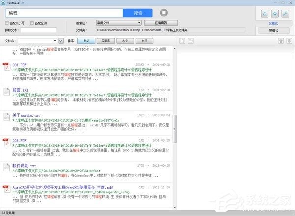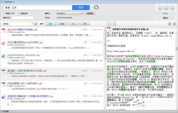 当Windows的默认搜索找寻了很久,最后告诉你没找到,甚至部分文件就在你眼皮底下都没找到,这往往使人十分恼火。通过引入先进的索引技术,TextSeek能解决这类问题。它采用全文扫描技术来找出所有文字(不会因为分词错误而找不到),并像百度一样展示搜索结果。其中,区模式采用了预扫描技术来加速搜索(需先定义搜索范围并进行扫描),只要几秒钟就能反馈搜索结果。