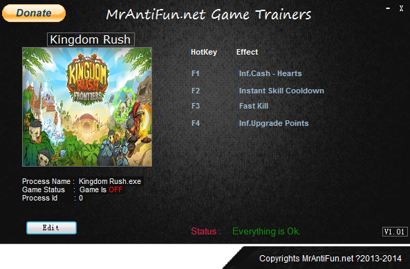 王国保卫战四项修改器下载解压缩,运行游戏,开启游戏修改器即可。
