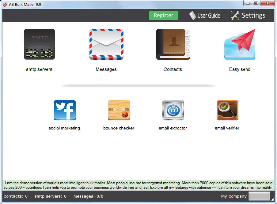 AB Bulk Mailer是一款畅销的电子邮件营销软件,内置电子邮件提取器,电子邮件验证器,最受欢迎的电子邮件营销软件,能够批量编辑及发送邮件和电子邮件。