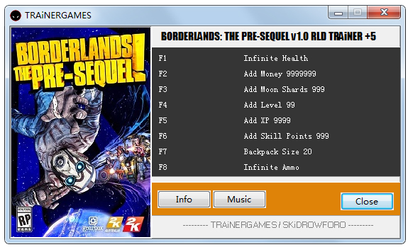 无主之地前传八项修改器是该款同名角色扮演类游戏——《无主之地:前传》的作弊工具。该款无主之地前传修改器可进行无限生命、增加999月亮石、无限子弹、增加等级99、背包格为20等8项操作设置辅助,让你更轻松的进行游戏体验!