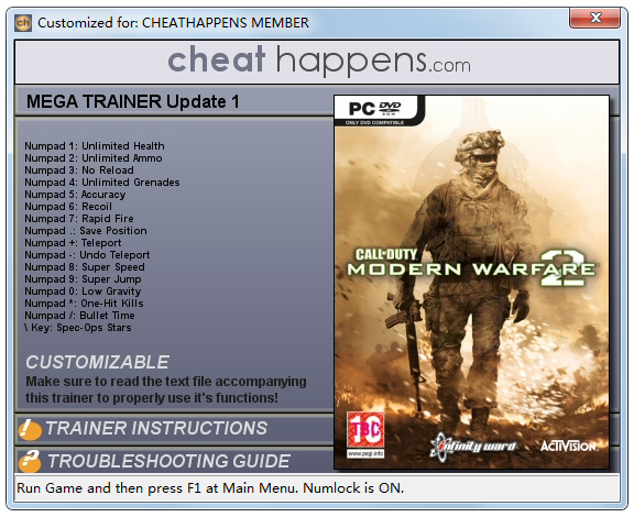 使命召唤6十项修改器是该款同名角色扮演类游戏——《使命召唤6》的辅助工具。这款使命召唤6修改器可进行无限生命、无限弹药、无需装弹、无限手雷等10项操作设置辅助,让你更轻松玩游戏。