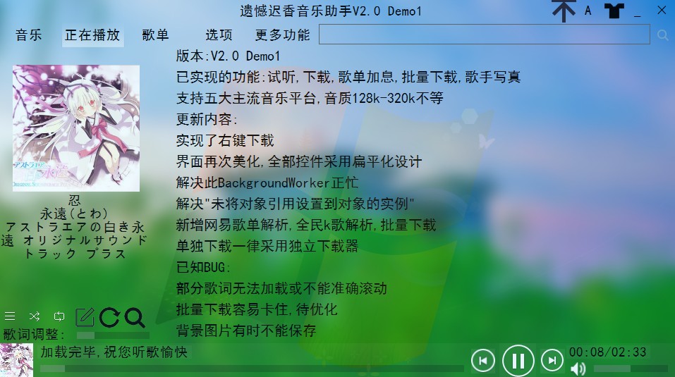 遗憾迟香音乐助手是一款专业的多平台音乐下载工具,它能够帮助用户轻松下载一些vip付费歌曲,让用户可以免费听想听的音乐,不用为了vip付费什么的发愁,感兴趣的朋友不要错过了,欢迎大家下载体验。