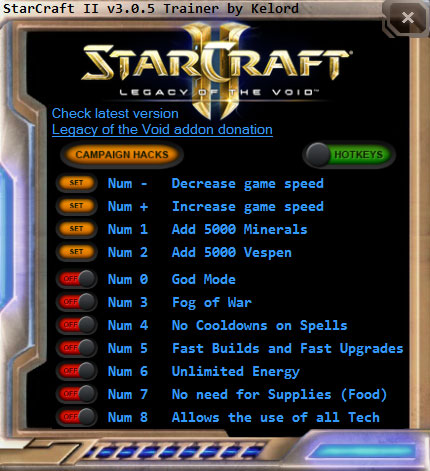 星际争霸2虚空之遗十项修改器是一款针对《星际争霸2:虚空之遗》的辅助工具。这款星际2虚空之遗修改器可进行无敌模式、游戏加速、无需供给、无限能量等10项操作设置辅助,让你更轻松游戏!