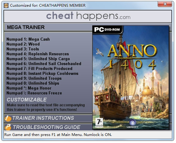 纪元1404探索的开端修改器 按键说明: