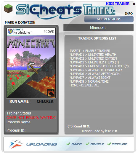我的世界七项修改器是该款同名无所不能的沙盒游戏——《我的世界》的通用版本作弊器。该款我的世界辅助工具可进行无限生命、无限氧气、无限物品、总是早晨、总是中午等7项操作设置修改,可大大降低游戏难度,让你更轻松的应对游戏剧情任务。