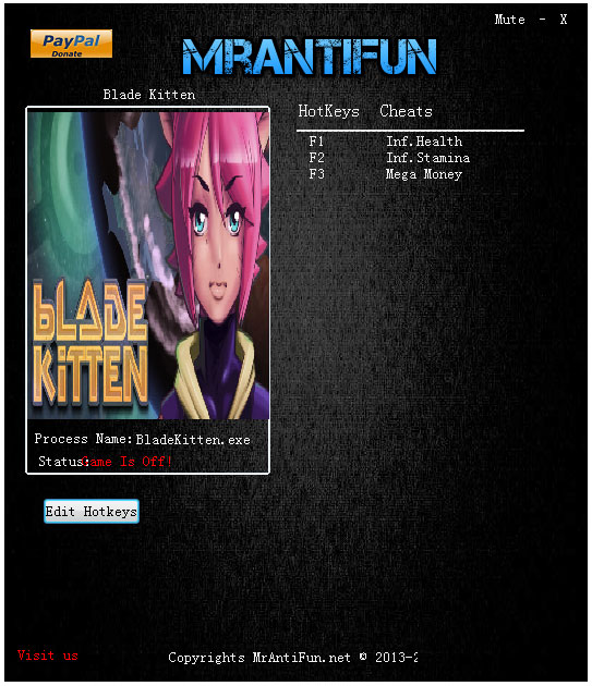 利刃猫女无限生命修改器,可获得无限生命,无限体力,海量金钱这三项实用功能,下载解压缩,先运行游戏,后免费即可。