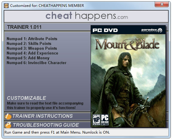 骑马与砍杀1修改器是一款游戏《骑马与砍杀》V1.011版本的修改工具,玩家通过该修改工具可以获得强大的属性和道具,让游戏通关变得更加轻松容易。