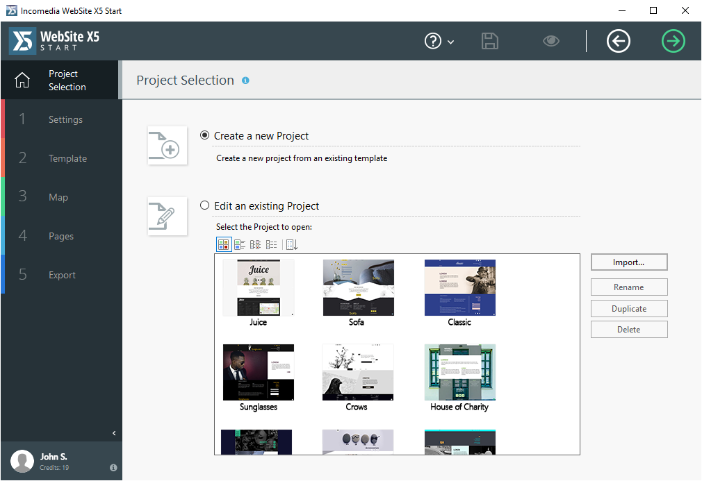 WebSite X5 Start 17是一款功能非常强大的可视化网页设计制作软件,用户只需按照它的向导一步一步进行操作就能便捷地设计出漂亮的网页,非常的简单方便,虽然是英文软件,但非常容易,无需专业知识,就可以轻松掌握,让你几分钟即可制作出精美非常的个人网页。