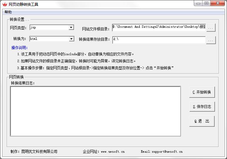 网页动静转换助手用于将ASP网页、JSP网页转换为静态的HTML网页文件。