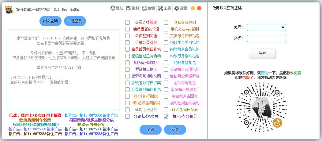 说一下为什么做这个软件吧,之前一直用某款签到助手,但是后来发现,Yy账号一直被异地登录,因为懒得开启登录保护,给我名字什么的都改掉了,频道马甲也给我脱了。