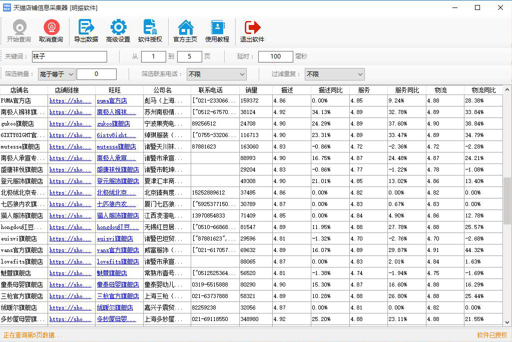 能采集卖家的旺旺、商铺名称、商铺链接、商铺等级、开店时间、联系电话、好评率、销量、产品数量等等信息,并能批量直接开旺旺与卖家对话,是店铺装修,厂家,其他等行业的首选软件。