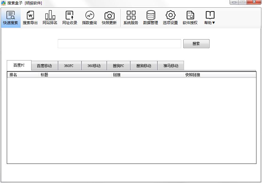 搜索盒子是明振软件推出的一款站长工具,能够批量查询网站收录,监控网站排名,快速搜索指定内容,还能进行快照批量更新等等功能,主要进行数据管理,搜索功能非常强大,自定义下载安装,非常人性化,可以对网页收录情况查询,用户可以放心使用。