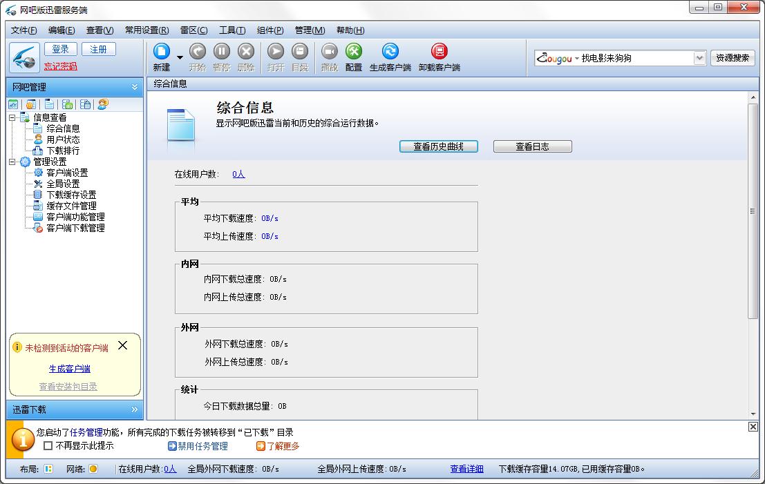 2.网吧版迅雷分为服务器端及客户控制端两部分,启用“自动缓存”功能后,网吧内重复下载较多的文件将会被服务器端缓存。