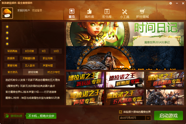 新浪蘑菇插件是一款最新最全的魔兽世界插件管理器,拥有千余款插件下载、宏命令、天赋模拟器、模型修改、字体修改等。用户可以通过蘑菇对魔兽世界插件进行查询、下载、使用、卸载等操作。