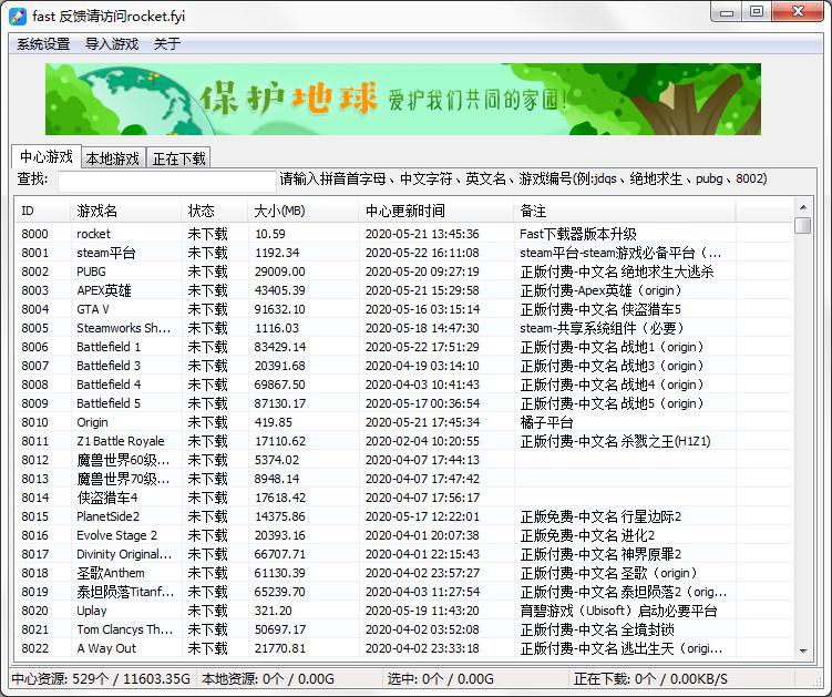 Fast下载器是一款免费的游戏下载软件,整合Steam游戏平台热门游戏以及部分稀有游戏,提供高达5TB的热门游戏资源,软件使用P2P下载模式,界面清爽简介,操作简便,绿色无广告污染。