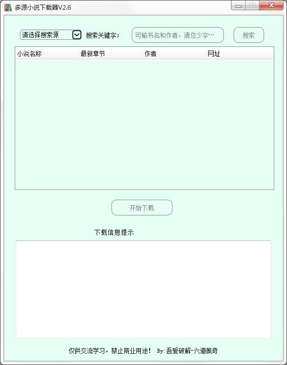 多源小说下载器是款简单实用的网络小说资源下载工具,该软件可以帮助小说迷们快速下载各大平台的热门小说资源到本地上,软件内可供搜索下载的小说资源丰富,支持离线观看,操作简单,方便快捷,非常不错,测试工具下载的数据请尽快删除,看小说还请支持正版。