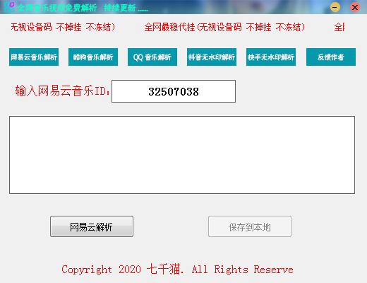 全网音乐视频免费解析是针对全网打造的一款非常强大的音乐视频免费解析下载工具,该工具支持网易云音乐、酷狗音乐、QQ音乐等平台,支持无水印视频一键获取,支持多平台、多接口,动态实时公告,全网音乐解析,能够通过多个平台找到自己想要找的歌,就避免了还要下载多个平台去听歌的烦恼。