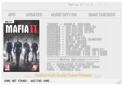 黑手党2十一项修改器是该款同名动作角色扮演类游戏——《黑手党2》的辅助工具。这款黑手党2通用修改器可进行无限生命、无限金钱、无限弹药、一击必杀、超级速度等11项操作设置辅助,让你轻松的进行游戏体验!