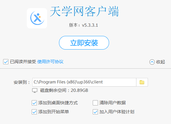 1、双击打开安装包,可选择立即安装或展开自定义安装。
