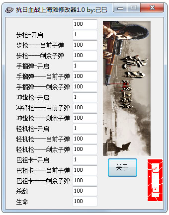 抗日血战上海滩十八项修改器是同名游戏的一款辅助工具,使用这款辅助工具可以大幅度的降低游戏难度,使游戏更加容易通关。《抗日:血战上海滩》是一款抗日射击类游戏,游戏内容非常的精彩。