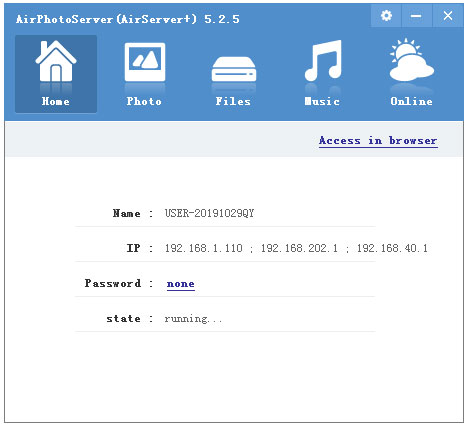 这款应用能够通过无线的网络访问电脑上的照片,这样用户就可以将自己的照片放在电脑中随时通过 wifi 浏览而不需占用设备的储存空间。当然你愿意的话,也可以通过 wifi 下载电脑里的照片。它还是一个照片分享器,用户可以在 wifi 网络上搜索到其他用户在电脑上公开的照片,同时你也可以分享自己的。为了保护用户的隐私,应用支持照片文件夹上锁。