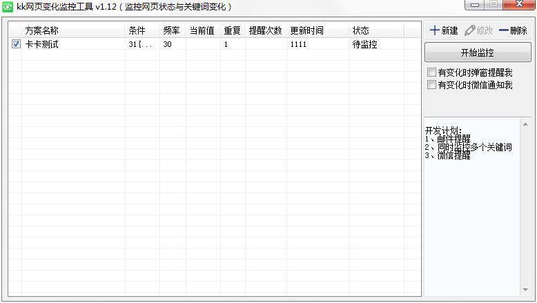 kk网页变化监控工具是款功能强大的网页监控辅助工具,用户可以借助这款软件实时监测关注网站变化,帮助用户关注网站运营情况,用户能第一时间知道网页不能访问或出现全新关键词等重要信息,非常适合网站运营使用,软件还能够监控网页任何位置发生的变化,操作简单,方便快捷,非常好用。