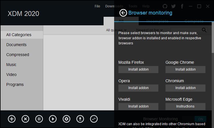 XDM支持所有流行的浏览器,包括谷歌Chrome,Firefox Quantum,Vivaldi,Opera和Windows,Linux和OS X上的许多其他浏览器。