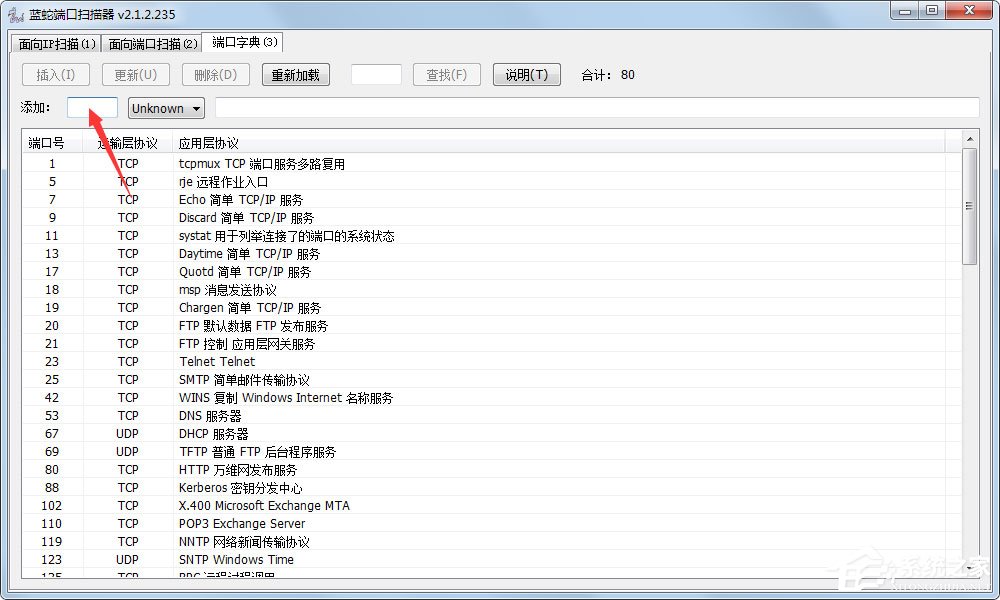 7、端口字典界面,应用层协议:tcpmux TCP端口服务多路复用、rje远程作业入口、echo简单TCP/IP服务;